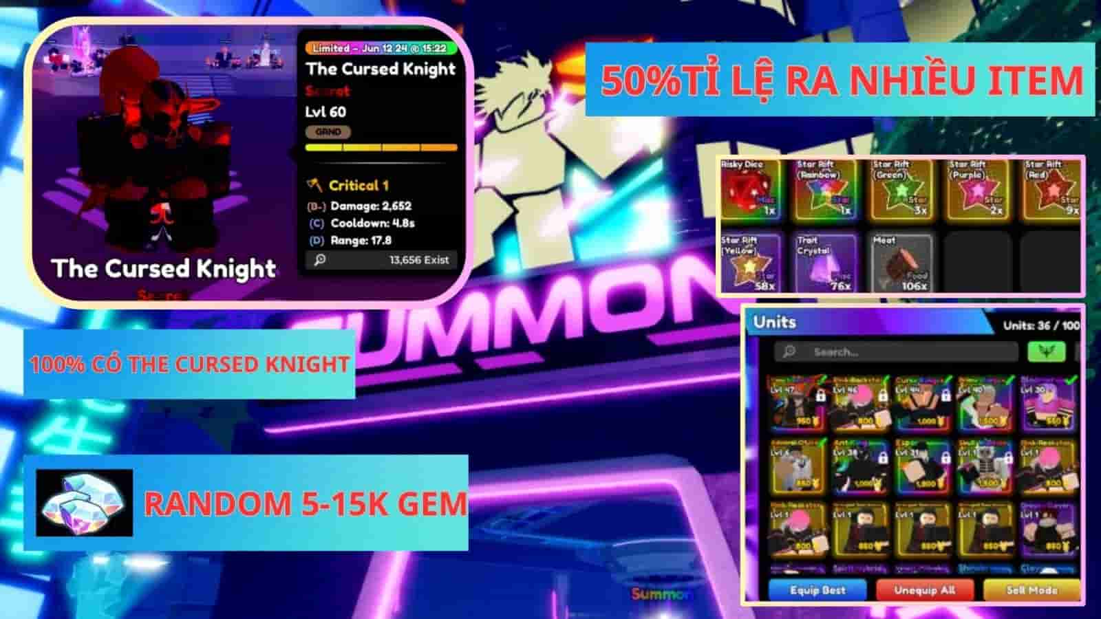 ACC 100% CÓ THE CURSED KNIGHT 1200K VÀ ITEM NGON
