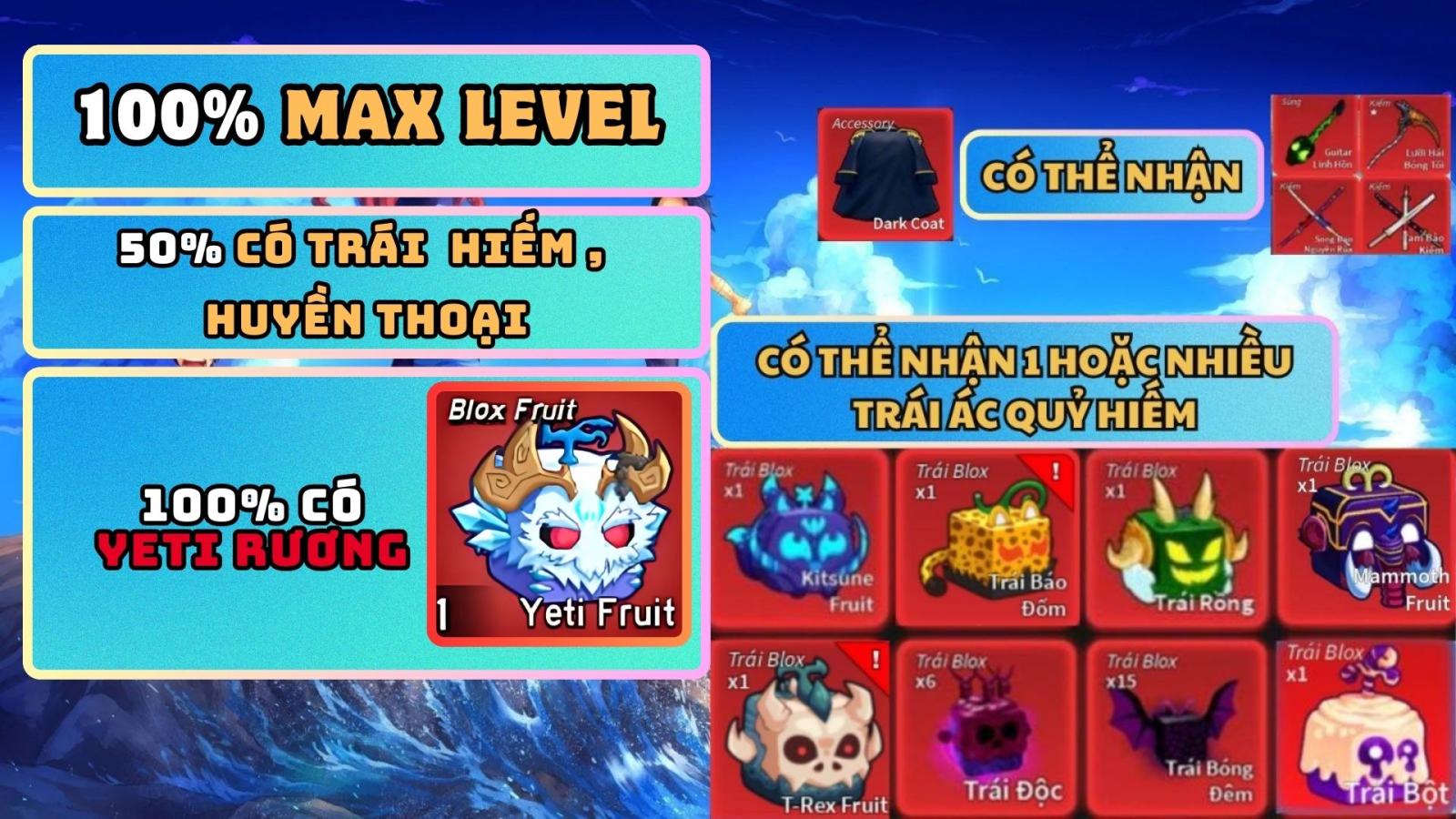 Acc 100% Trái Yeti 180k Bảo Hành 6h